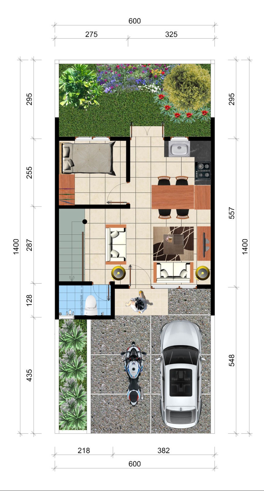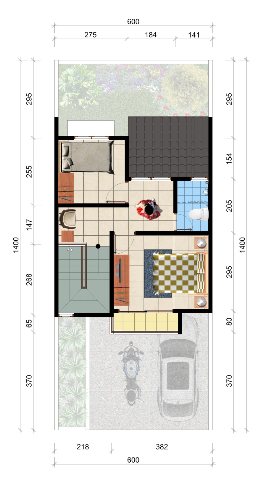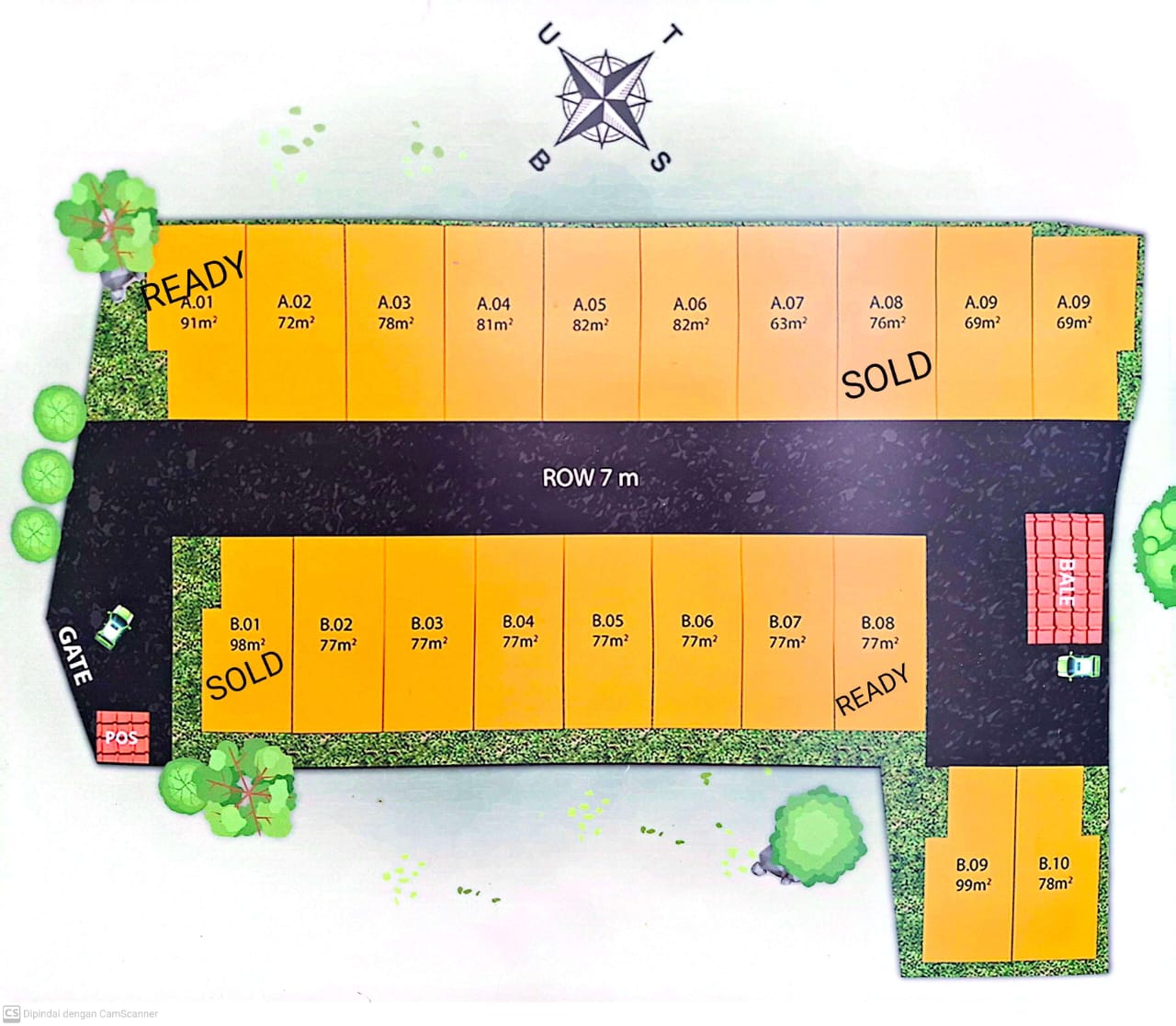 Spesifikasi Bangunan : Pondasi Beton Foot Plat, Struktur Beton Bertulang, Dinding Bata Ringan 10cm finish plester aci instan Finish Cat, Lantai Granit Tile 60x60, Plapon Gypsum, Rangka Atap Baja Ringan, Genteng Metal pasir,Kusen Aluminium, Daun Pintu Lapis HPL, Listrik 2.200 watt, Pompa air dalam tanah, Closet Monoblok dan Shower Mandi, Beton meja dapur.